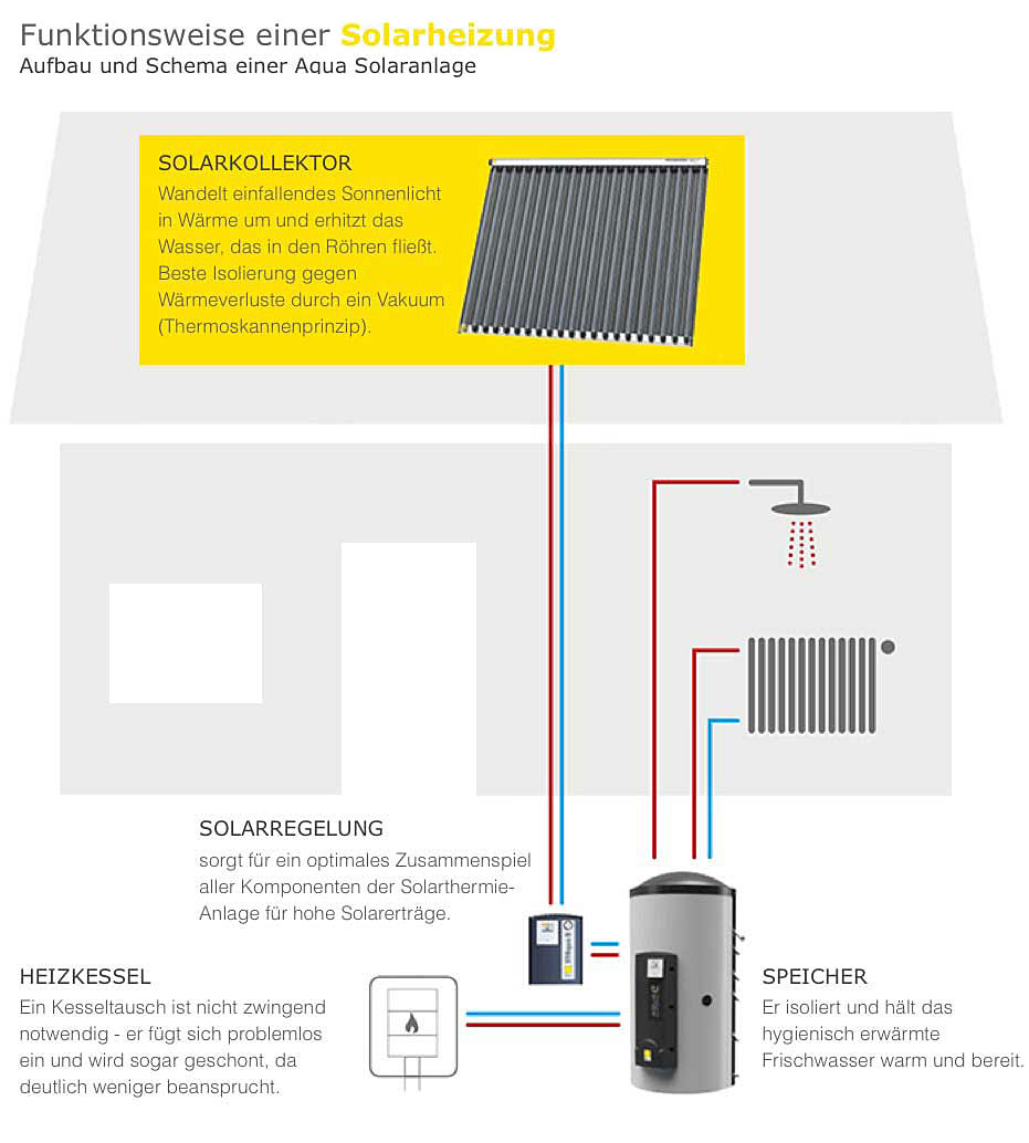 | 3 | Einfache Nachrüstung – oft ohne Speichertausch Nahezu jede bestehende Heizung kann nachgerüstet werden. In der Regel brauchen Sie somit Ihren vorhandenen Speicher nicht auszutauschen um sonnengewärmtes Wasser zu genießen und die Heizung mit Sonnenenergie zu unterstützen. |